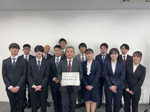 令和7年度新卒入社式2025/04/01 今年も新卒社員をお迎えしました! 写真はワインを取り扱う部署の研修風景です。 寒暖差の激しい日が続きますが、体調に気を付けてがんばりましょう! 埼玉県草加市に新拠点を開所しました。2024/07/16 この度、新たに関東物流センターを開所しました。 住所:埼玉県草加市柿木町字宝1338番9 WAKO GROUP プロセスセンター内 TEL:048-933-5550 とんかつ和幸で有名なWAKO GROUP様の新センターにて3温度帯倉庫を構え、東日本エリアの店舗の配送を担ってまいります。 今後とも、荒木運輸株式会社を宜しくお願い致します。 令和6年度新卒入社式2024/04/05 今年は5名の新卒社員をお迎えしました! 入社式・研修を経て、4/3から現場でのOJTが始まっています。 コロナが5類に移行して初めての入社式。 寒い日が続き、桜はまだ咲いていませんが、新入社員のみなさんは元気いっぱいです! 働きやすい職場認証二つ星の取得について2023/06/01 一般財団法人日本海事協会より【働きやすい職場認証制度】の 二つ星として認証されました。 今後はさらなる職場環境向上に取り組み、三つ星★★★取得を 目指して参ります。 令和5年度新卒入社式2023/04/06 今年も8名の新卒社員をお迎えしました! 入社式・研修を経て、4/5から現場でのOJTが始まっています。 昨年も同じような内容を書きましたが、来年の今頃こそは落ち着いていますように…。 次のページ ▶